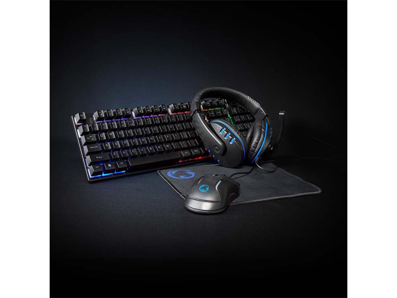 Tato dokonalá Nedis herní startovací sada 5 v 1 dokáže prosvětlit každý herní zážitek. Sada obsahuje klávesnici a myš s LED podsvícením, podložku pod myš, náhlavní soupravu a adaptérový kabel náhlavní soupravy. Sluchátka, klávesnice a myš lze také použít s několika herními konzolemi pro co nejefektivnější herní zážitek.