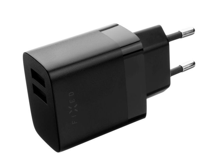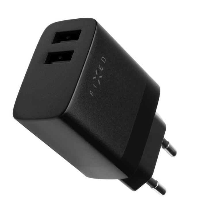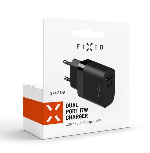 Síťová nabíječka FIXED s 2xUSB výstupem, 17W Smart Rapid Charge, černá