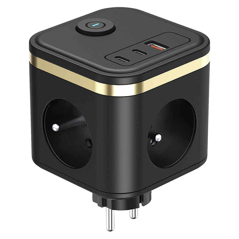 Síťový adaptér • rozbočovač • zásuvka • 3 x AC (230V) výstup • 1 x USB-A (5V 3A, 9V 2A, 12V 1,5A) • 2 x USB-C (5V 3A, 9V 2,22A, 12V 1,67A) • kompaktní rozměry a design • tlačítko ON/OFF • možnost nabíjení až 6 zařízení současně