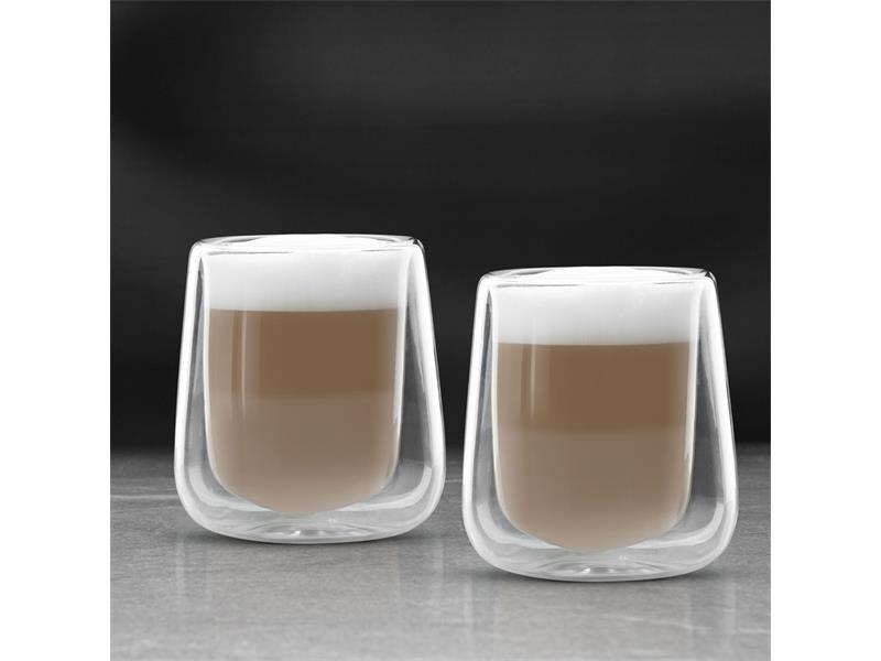 Sada dvoustěnných sklenic z borosilikátového skla s moderním vzhledem pro potěšení ze zapomenuté kávy a nápojů. Je výborný na kávu a teplé a studené nápoje. Díky dvojité skleněné stěně vám horké nápoje nepálí ruce.