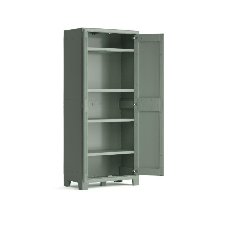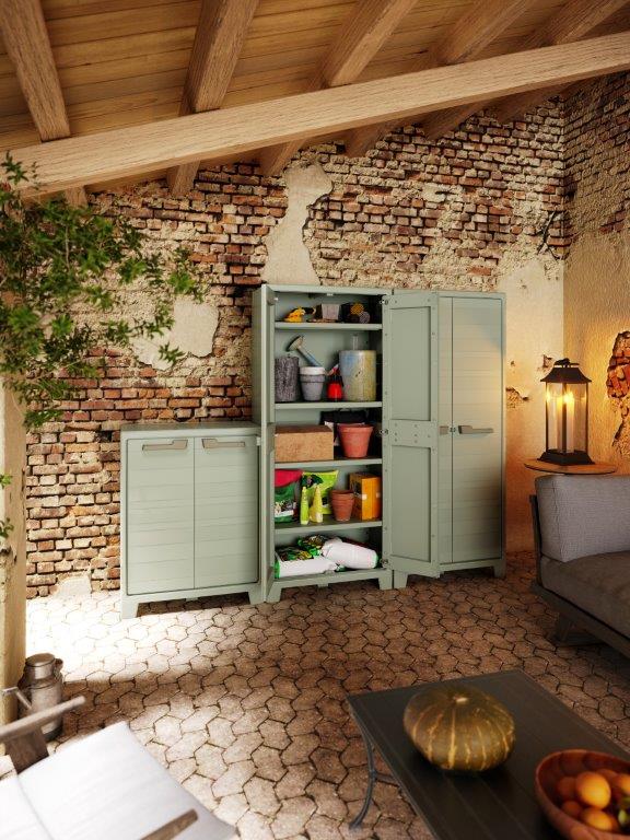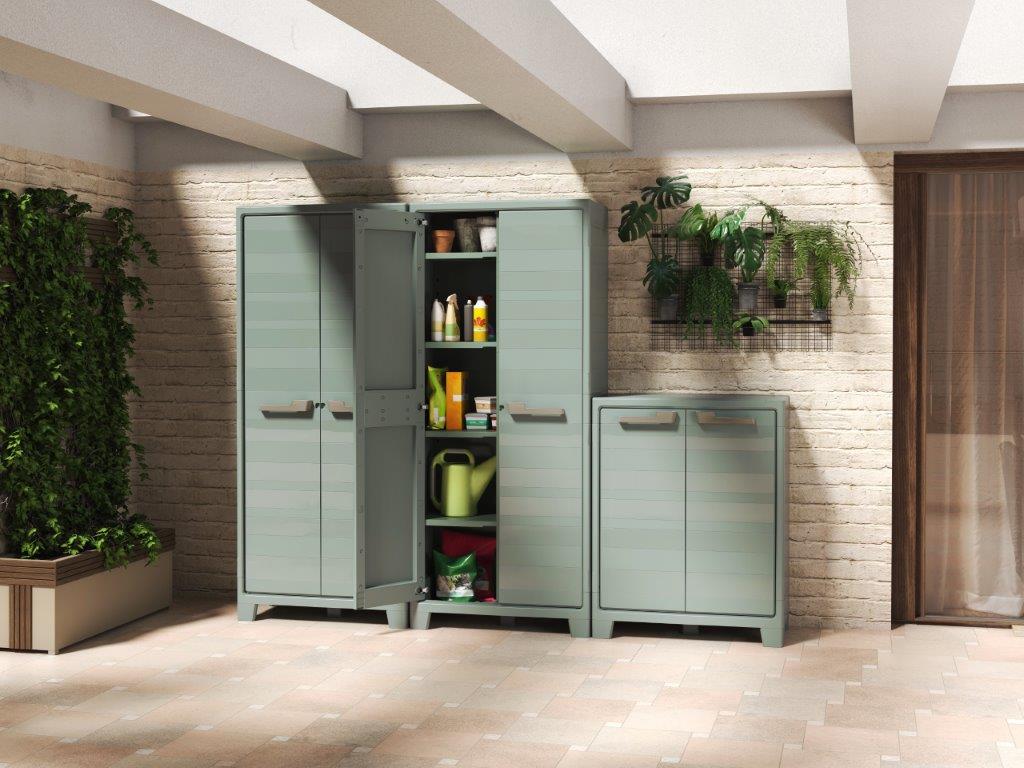 Skříň je vyrobená z 80 % z recyklovaného plastu. Díky možnosti uzamčení ochráníte veškeré uschované cennosti před odcizením, tudíž bude vnitřní obsah v bezpečí za každé situace.