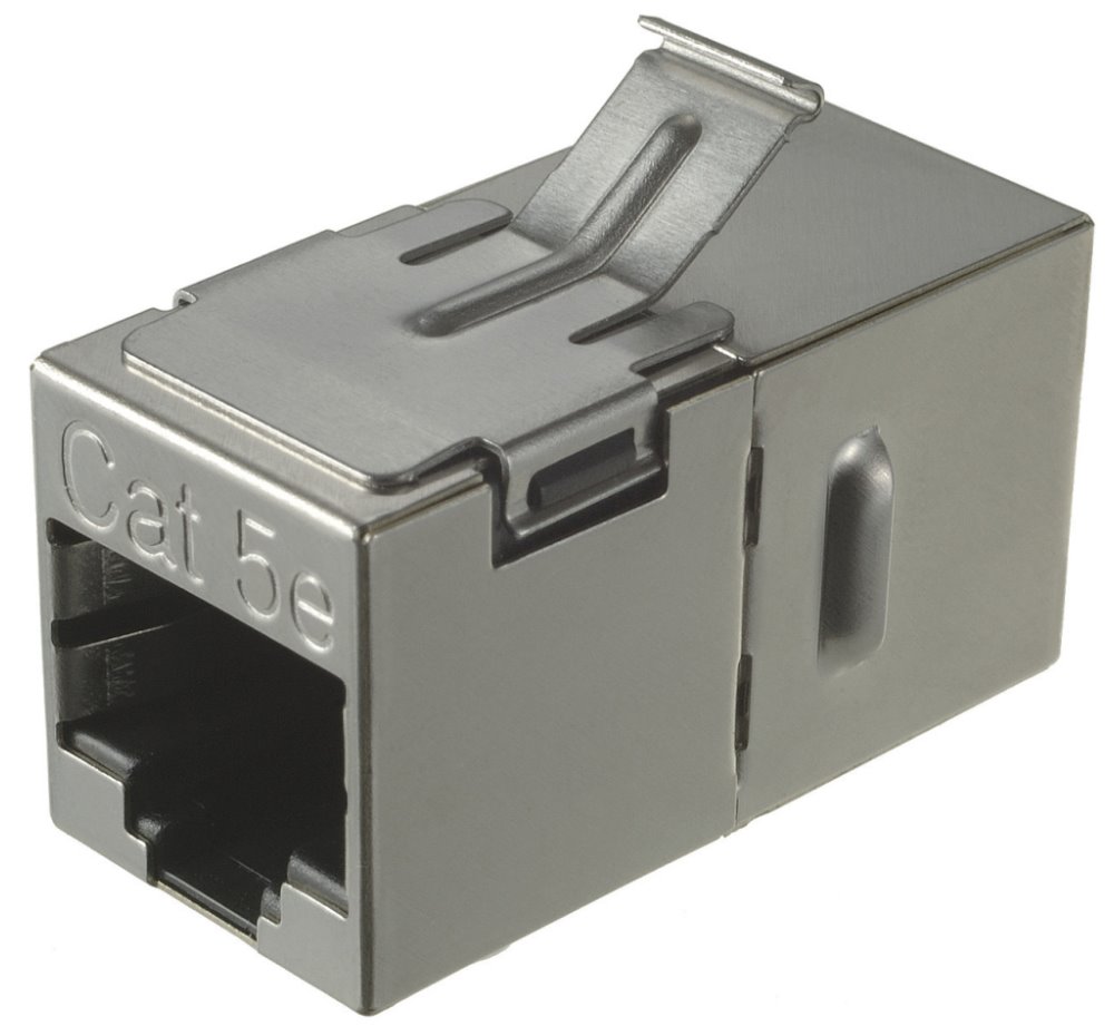 Přímá panelová stíněná spojka cat.5e pro spojení dvou kabelů s RJ45 konektory.