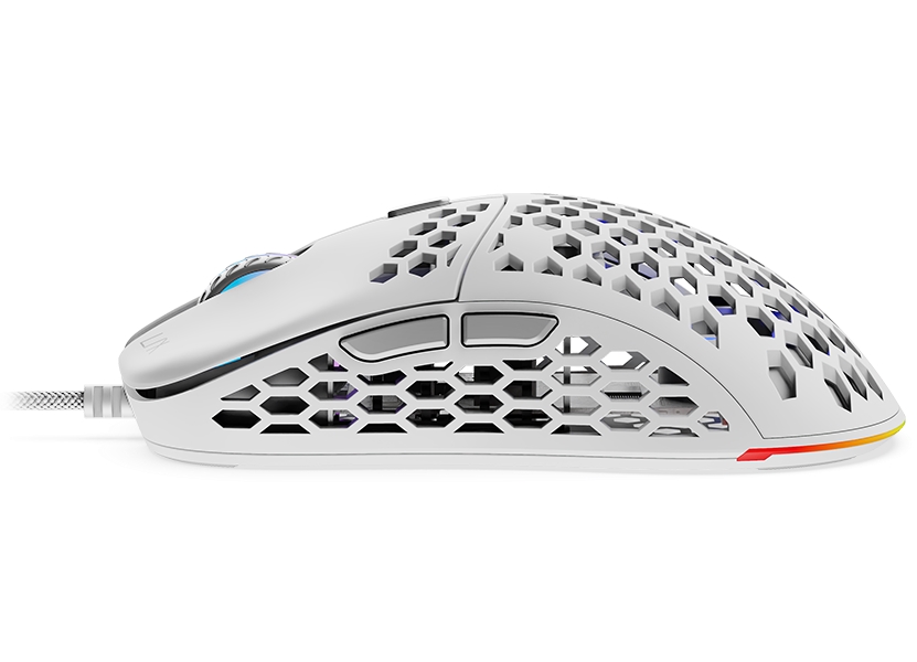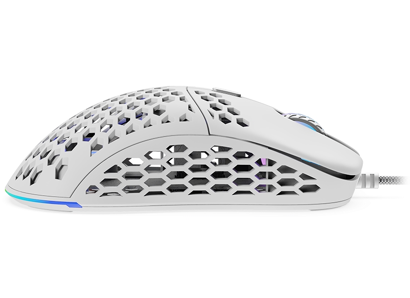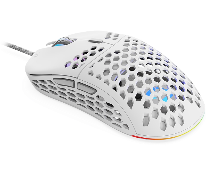 Ultralehká herní myš disponující 6 programovatelnými tlačítky a vysoce přesným optickým senzorem Pixart PMW3325 s rozlišením až 8000 dpi. Kryt v designu plástve snižuje celkovou hmotnost, zlepšuje odvod tepla, a tím zajistí i pevnější uchopení myši. Herní design poté doplňuje adresovatelné RGB podsvícení. Kvalitní spínače Omron vydrží více než 20 milionů kliknutí. Připojení je realizováno skrze opletený USB kabel o délce 1,8 m.
