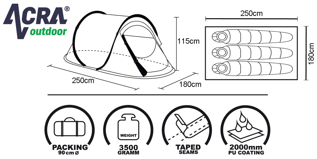 - 1x Stan Acra BROTHER ST01 samostavěcí pro 3 osoby