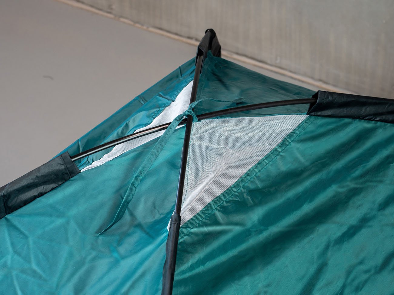 Jednoplášťový stan má vchod opatřený moskytiérou, abyste mohli ve stanu větrat. Dokud necháte síť zapnutou, hmyz vás nebude otravovat. PE podlážka odolá vodě do 3 000 mm vodního sloupce. Nosnou část stanu tvoří sklolaminátové pruty.