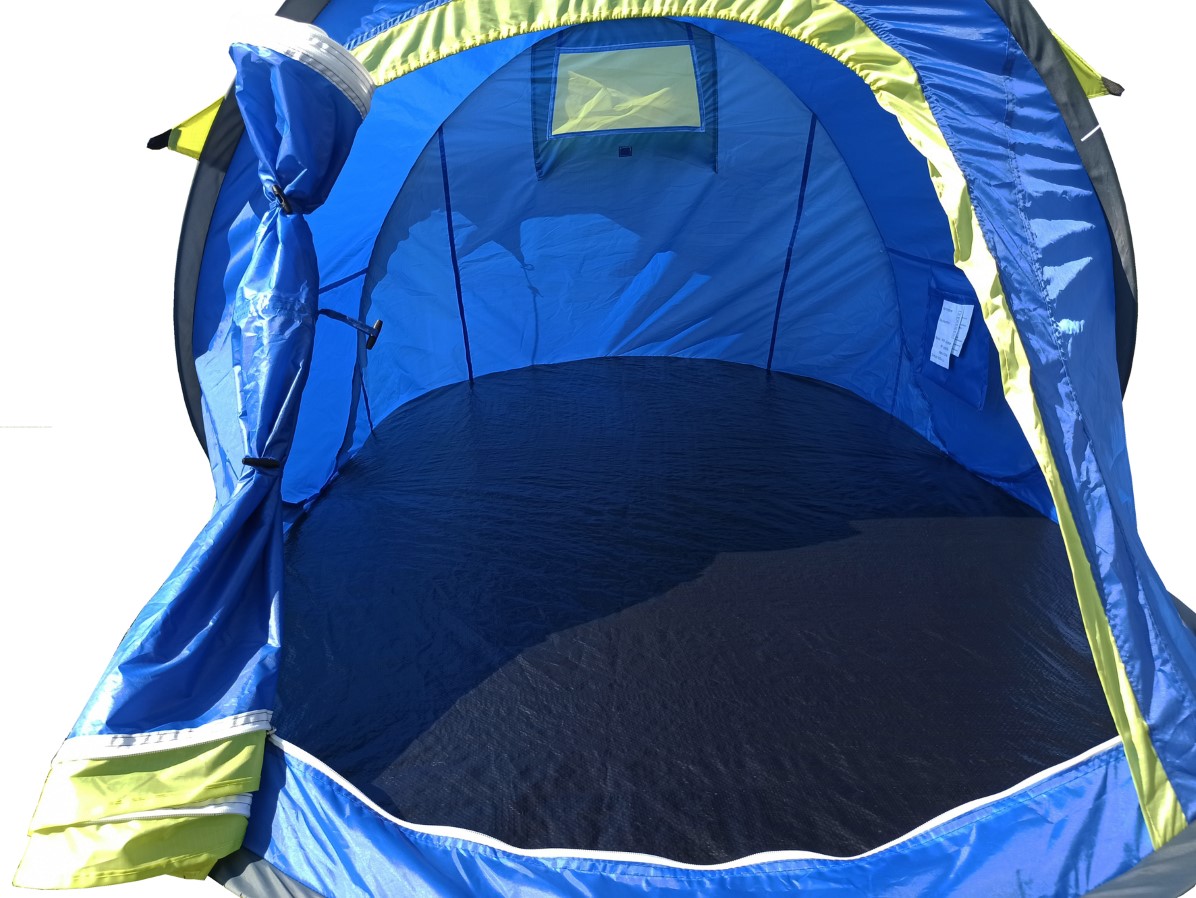 Jednoplášťový tunel má přední vchod na zip. Zpevněné švy brání proniknutí vody do vnitřního prostoru stanu. Pokud budete chtít stan rozložit a sbalit na cestu, provádějte demontáž podle návodu, aby nedošlo k poškození sklolaminátových prutů.