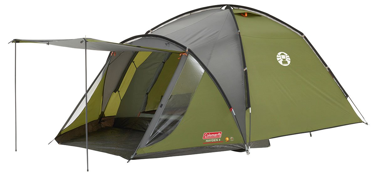 Rodinný turistický stan Coleman Hayden 4 je vhodný pro cestování a trekking všeho druhu, kdy představuje fantastické řešení na výlety do přírody pro 4 osoby. Může se pochlubit samonosnou 2plášťovou konstrukcí ve tvaru kopule se 2 zkříženými sklolaminátovými pruty, které doplňuje 3. předsunutá tyč, jež vytváří prostornou předsíňku s odnímatelnou podlážkou. Kopulová konstrukce pak přináší hned několik výhod, mezi které patří rychlá a intuitivní stavba (stačí vypnout pouze předsíňku), dobrá stabilita v různorodých podmínkách a také velice nízká hmotnost i kompaktní rozměry, tudíž se zabalený stan při dlouhých výletech či výšlapech tolik nepronese.