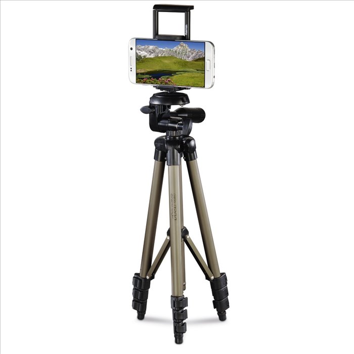 Set tripodu 106 - 3D a držáku 2v1 pro smartphone / tablet značky Hama obsahuje navíc ještě brašnu. Využijete jej pro fotoaparáty i videokamery. Zajistí vám stabilitu a ostré snímky i na nerovném povrchu. V hlavě stativu je integrovaná vodováha.