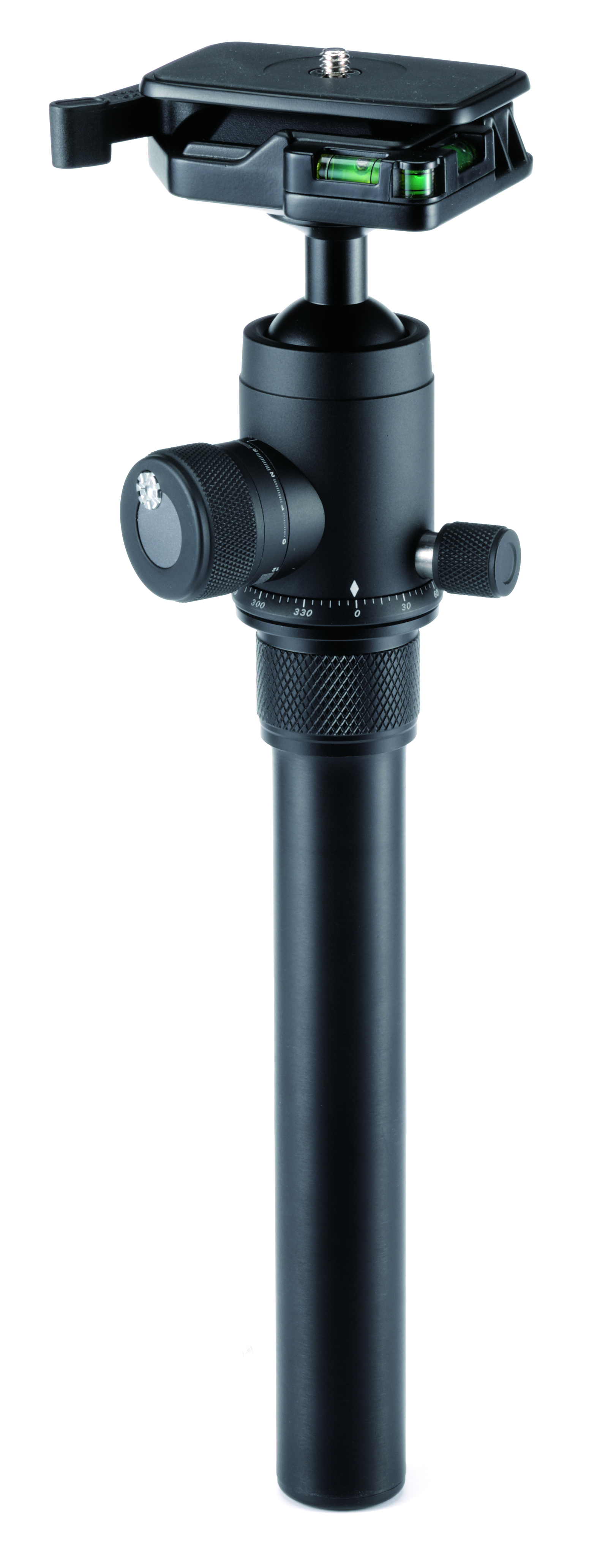 - Možnost otočení středové tyče s hlavou do pozice "mezi nohy" umožňuje dosažení minimální pracovní výšky pro snímání makro fotografie
