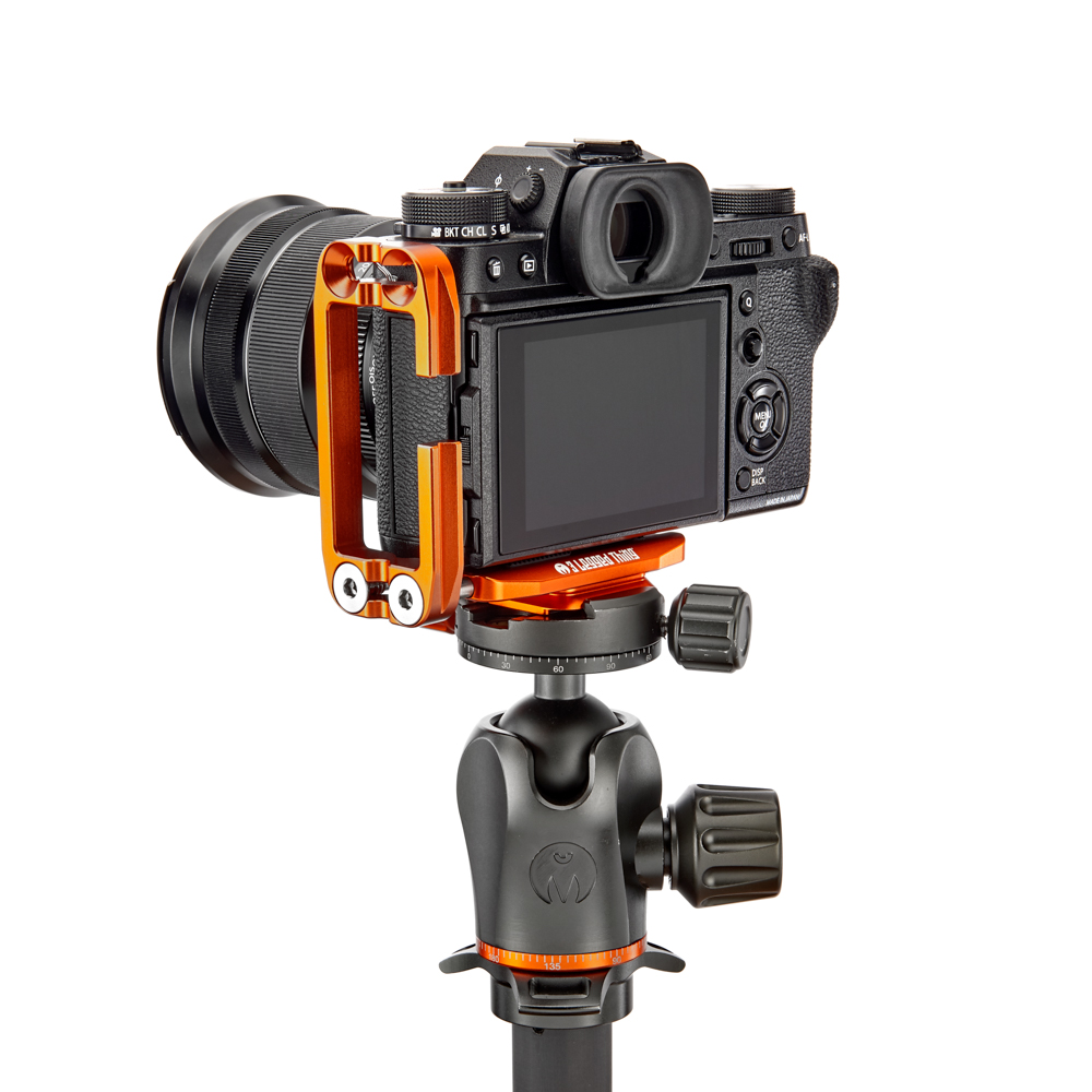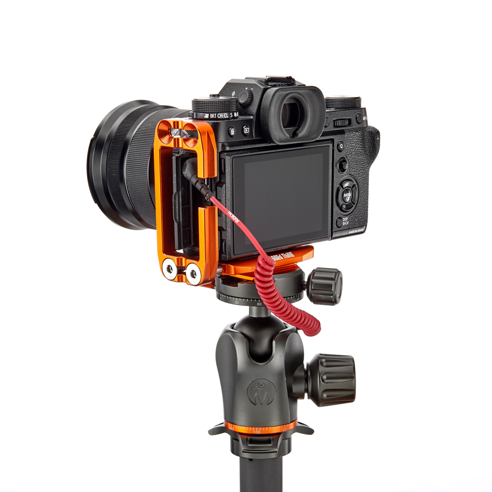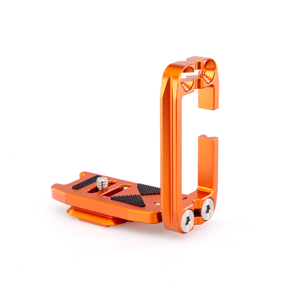 Délku držáku lze nastavit až do 113 mm pomocí 2 tuhých posuvných tyčí a šroubů z nerezové oceli, které si uživatel pomocí dodaného nástroje zafixuje na svém místě. Zadní hrana základny je zkosená pro lepší přístup k výklopnému displeji fotoaparátu. Svislá součást je obrobena tak, aby neblokovala porty fotoaparátu, a navíc může být namontována naopak, aby bylo možné připojit kabely z pravé nebo levé strany. Boční desku navíc velice snadno připevníte vzhůru nohama, čímž přetvoříte L-Bracket na kolébkový držák pro vaši kameru.