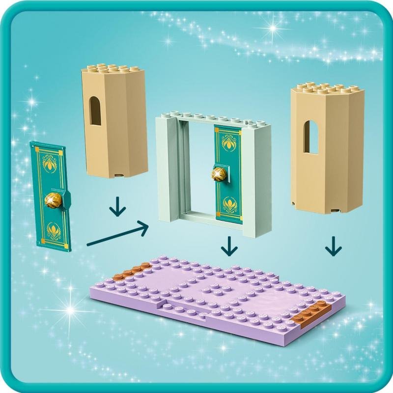 Stavebnice LEGO Disney Anna and Olaf's Castle Fun (43204) s oficiální licencí k úspěšné sérii Frozen zahrnuje celkem 108 různotvarých dílků, které přinášejí bezpočet herních možností. Obsahuje sestavitelný 2patrový model zámku Arendelle, minipanenku princezny Anny, figurky roztomilého Olafa a bílého koně Kjekka i mnoho dalších doplňků, jako je fialová vlajka, zlatá číše, truhlice, diamanty, hodiny, kartáč či tabulka čokolády. Vaše ratolest tak bude naživo prožívat filmové scény jako vystřižené z této disneyovské animované pohádky. Zároveň si může vytvářet vlastní poutavé příběhy a ojedinělé herní scénáře pro rozvoj fantazie i dalších klíčových dovedností.