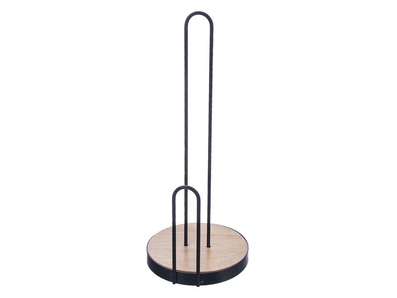 Stojan na papírové utěrky zajistí, že se nebudou nikde plést, budou pohotově po ruce, snadno je přemístíte. Zarážka proti rozmotávání utěrek. Vlastnosti: - Materiál: kov, dřevo - Rozměry: pr. 15 cm, v. 36 cm