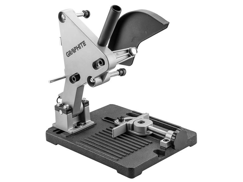 Stojan úhlové brusky GRAPHITE určený pro přesné řezání kovových dílů. Ideální pro spolupráci s bruskami s průměrem kotouče 115 a 125 mm. Velmi odolná základna stativu litá pod tlakem je vybavena otvory, díky kterým ji lze snadno připevnit k pracovní desce. Stativ je vybaven otočným svěrákem, u kterého je rozsah sečení nastavitelný od 0 ° do 45˚.