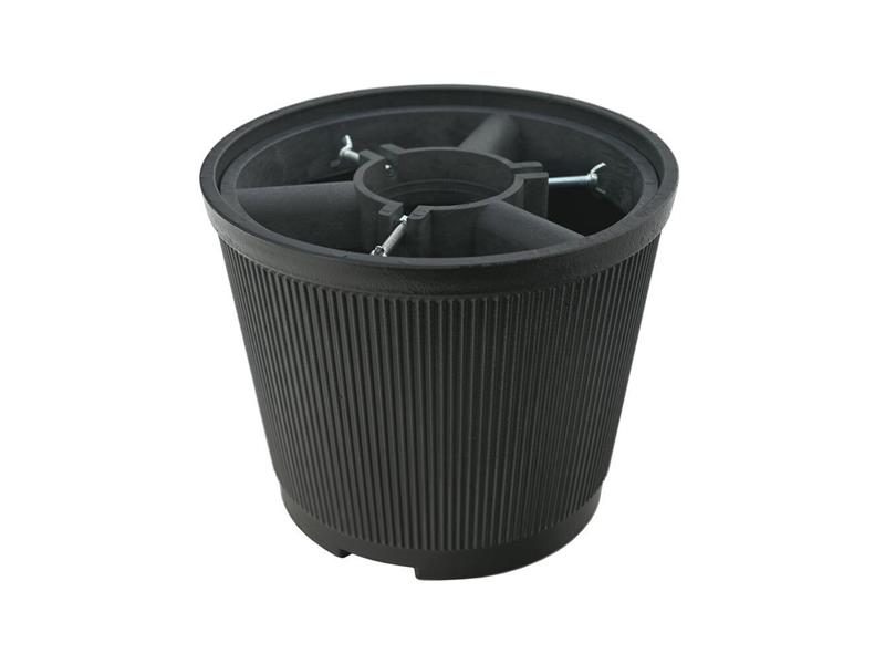 Tělo stojanu je zhotoveno z odolného materiálu, který lze pro vyšší stabilitu naplnit vodou, pískem, nebo zeminou.