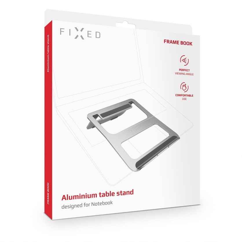 Přenosná hliníková podložka FIXED Frame Book je praktickým doplňkem pro váš notebook do kanceláře i na cesty. Díky nastavenému sklonu vám ulehčí práci a uleví vašim zádovým i krčním svalům. Zároveň umožní proudění vzduchu pod notebookem a zlepší tak jeho chlazení.