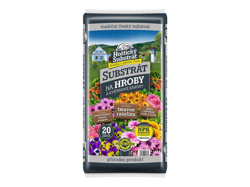 Hoštický substrát na hroby je vyroben z tmavé vytříděné rašeliny s přídavkem kvalitního zeleného kompostu a jílovité složky. K základnímu vyhnojení substrátu je použita kombinace minerálního vícesložkového hnojiva s mikroprvky a organického hnojiva v podobě drcené rohoviny. Pudní reakce je upravena jemně mletým dolomitickým vápencem.