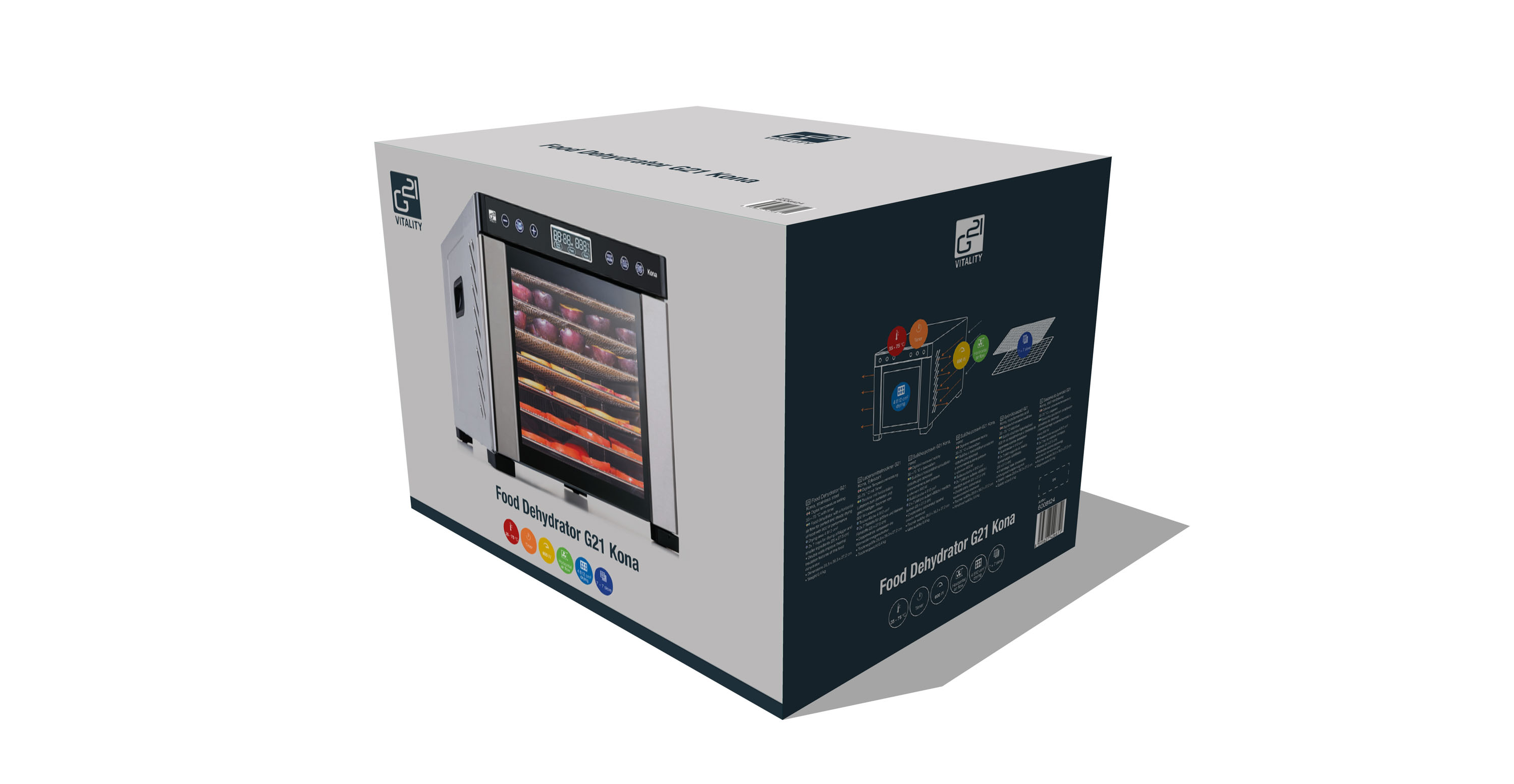 Horizontální sušička potravin G21 Kona se hravě vyrovná i větším a dražším modelům. Svým výkonem 600 W se řadí do nejvyšší třídy sušiček a díky 7 platům a velké sušicí ploše dokáže najednou usušit opravdu velké množství surovin.