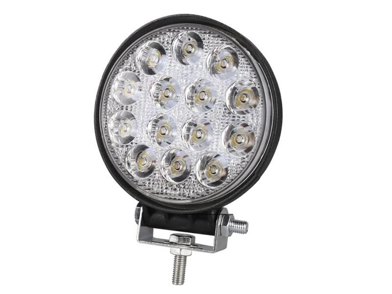 Pracovní světlo LED 10-30V/42W, průměr 115x38mm. Technické parametry: - 14× LED 3 W - teoretický maximální výkon: 42 W - skutečný změřený příkon: 26 W - napájení: 10–30 V - světelný tok: 2900 lm - krytí: IP67 Určeno pro off-road použití a jako pracovní světlo, světlo nemá homologaci pro použití na pozemní komunikaci.