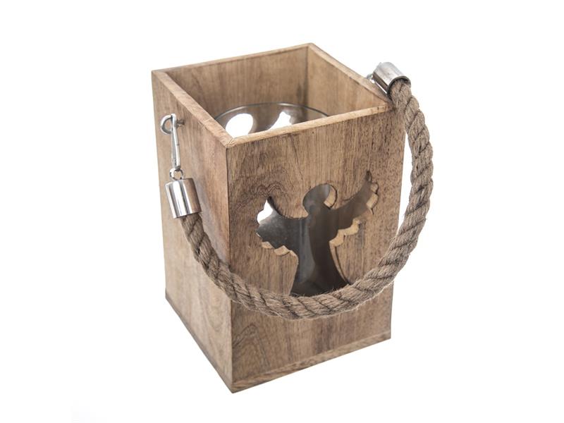 Svícen z mangového dřeva s andělem INDECOR 13,5x13,5x20cm