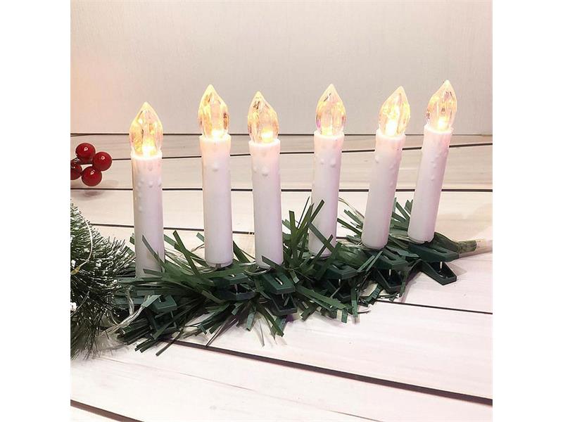 Svíčky s kolíčkem Technické parametry: - řetěz - 10xLED - 2xAA - časovač - 1,5x9cm - 10ks
