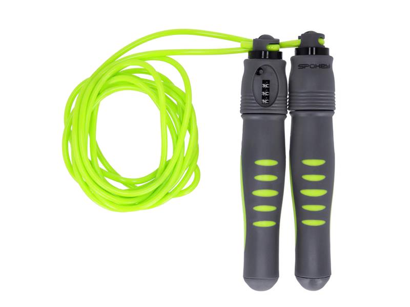 Spokey SCORE Švihadlo s počítadlem Technické parametry: - délka lanka: 300 cm - tloušťka lanka: 5 mm - materiál lanka: plast, PP rukojeť, PVC lanko - mechanické počítadlo