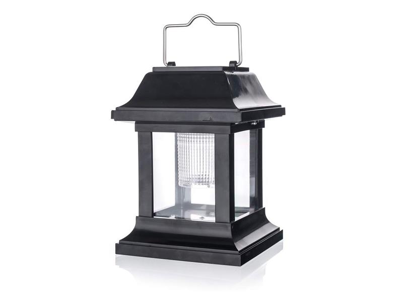 Solární lucerna černá - plastová. Lampa je vybavena solárním panelem, který se přes den na slunci nabije a v noci svítí. Lampa slouží jako doplněk k osvětlení vaší zahrady. Technické parametry: Baterie: 1 x Ni-MH AA 600mAh Krytí (IP): IP 44 Rozměry: 10,8 x 10,8 x 14 cm, 1 x LED