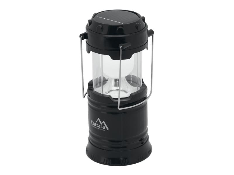 Kempingová LED svítilna s vysouvacím tělem, opatřená Li-Ion akumulátorem a solárním panelem.