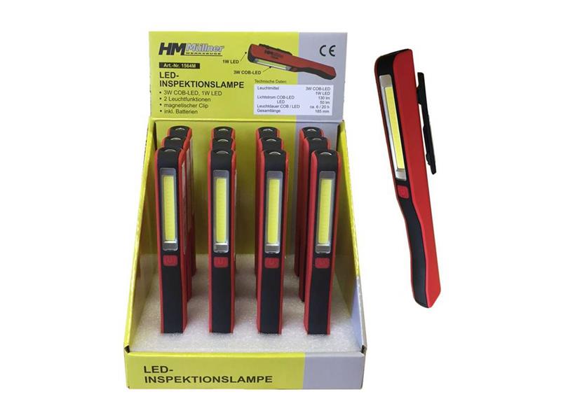 Inspekční LED svítilna - 2 světelné režimy - tělo z velmi odolného plastu - silný magnet - klip na uchycení s možností nasměrování ve třech pozicích Technické parametry: - Světelný zdroj: 3 W COB LED / 1W Power LED - Světelný tok: 130 lm / 50 Lm - Doba svícení: 6 h / 20 h (na alkalické baterie) - Napájení: 3x AAA (součástí balení) - Barva:…