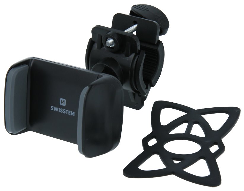 Držák na kolo pro smartphony o úhlopříčce 3,5" - 6" určený k uchycení na řidítka. Disponuje fixační gumou, která zabezpečuje, aby telefon nevypadl z čelistí.