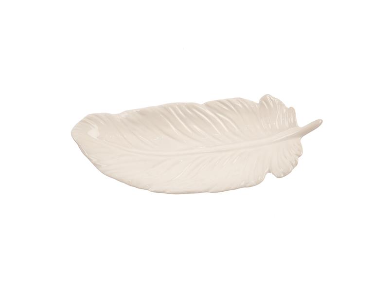 Tác na svíčku INDECOR List. Vlastnosti: - Materiál: Keramika - Barva: Bílá perleť - Rozměry: 30,5x11x3cm
