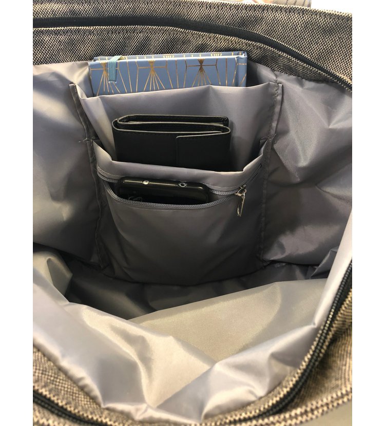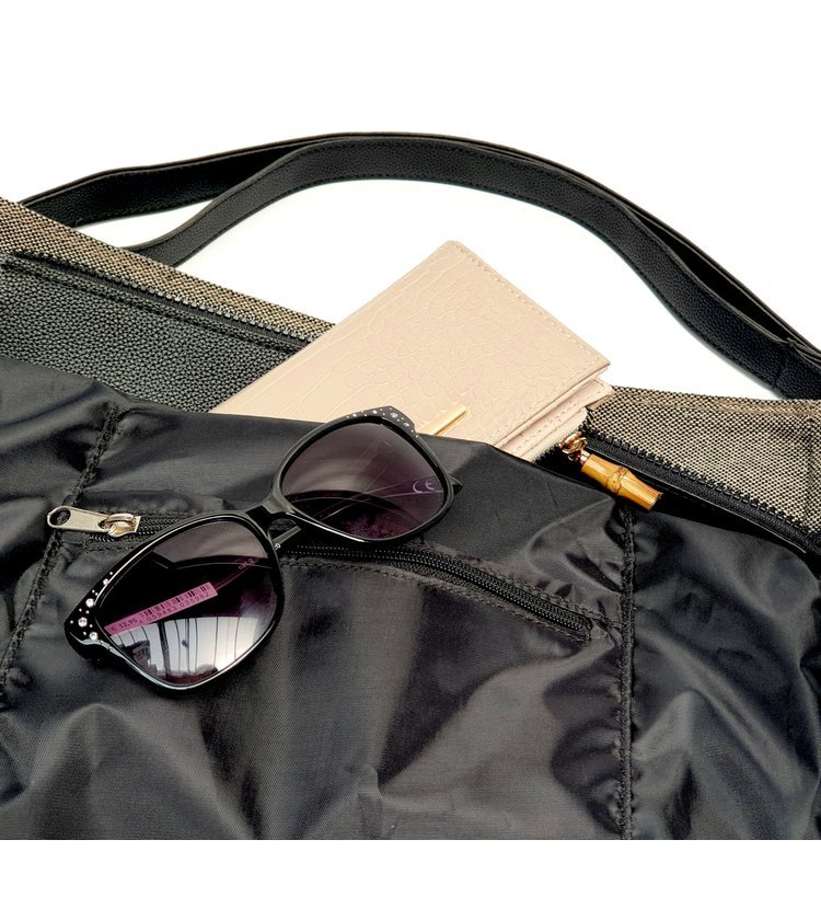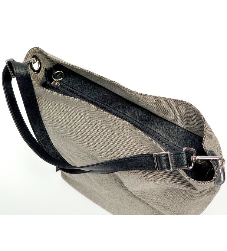 Velký vnitřní prostor tašky Ecobag je vybavený dvěma malými otevřenými kapsami a jednou kapsičkou na zip. Hlavní komora je po celé délce uzavíratelná na zip, který ochrání její obsah před případnými nenechavci. Pohodlné nošení zajišťuje široký nastavitelný popruh, který lze upravit do podoby „crossbody“, tzn. že tašku lze nosit nejen klasicky, ale také křížem přes celé tělo. Popruh je na tašce připevněný pomocí designových oček a karabin, tudíž ho lze snadno odepnout a samotnou tašku vyprat.
