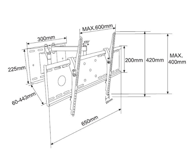 TB držák TV do 70" a 55 kg max VESA 600x400