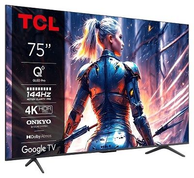 TCL 75T8B SMART TV 75" QLED/ 4K UHD/ Direct LED/ 144Hz/ 4xHDMI/ 1xUSB/ LAN/ GoogleTV