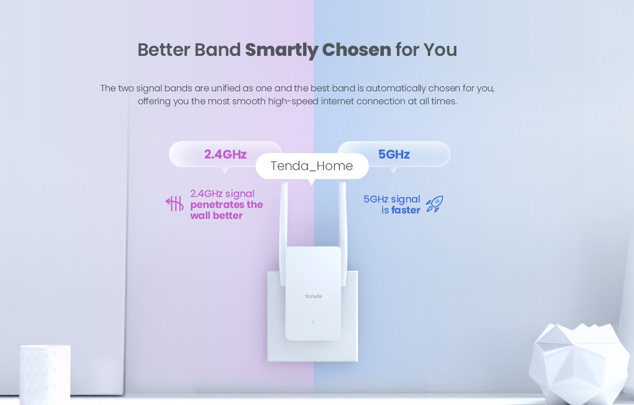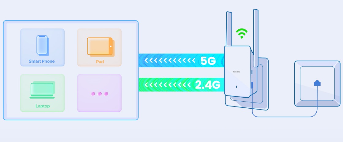 Tenda A27 se připojí na váš stavájící WiFi router v domácnosti,