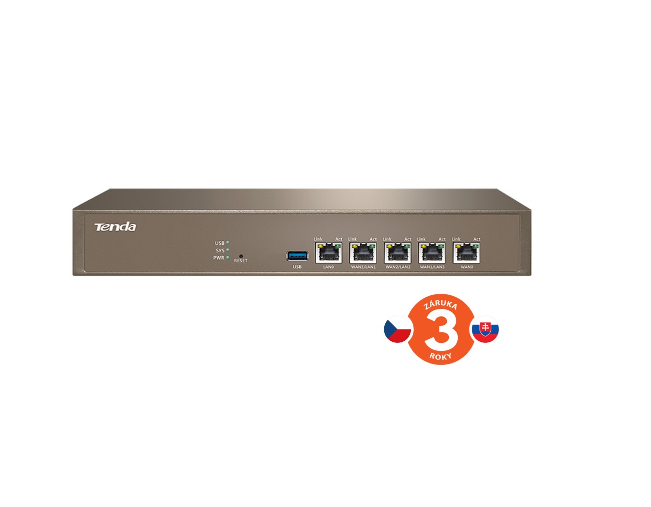 Porty: 5x Gigabit Ethernet (1x WAN, 1x LAN, 3x WAN/LAN)