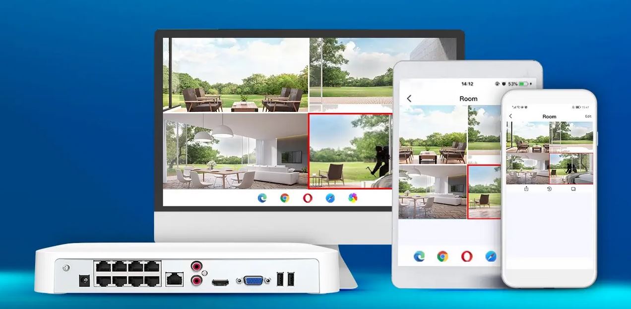 rekordér kamery pomocí PoE sám napájí. Lze vzdáleně online sledovat