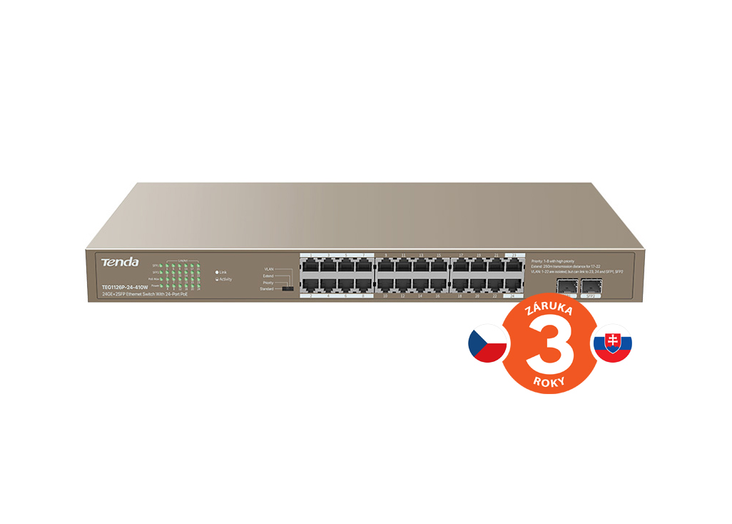 Tenda TEG1126P-24-410W je 24 portový Gigabitový Ethernet PoE