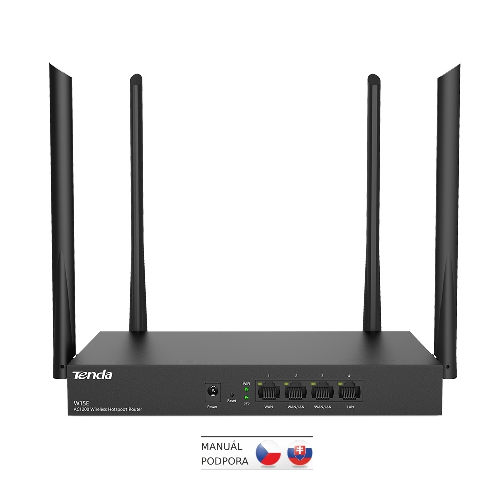 Tenda W15E WiFi Hotspot AC1200 Router, 1x WAN, 2x WAN/ LAN, 1xLAN, VPN, Captive portal, MultiWAN, Kov