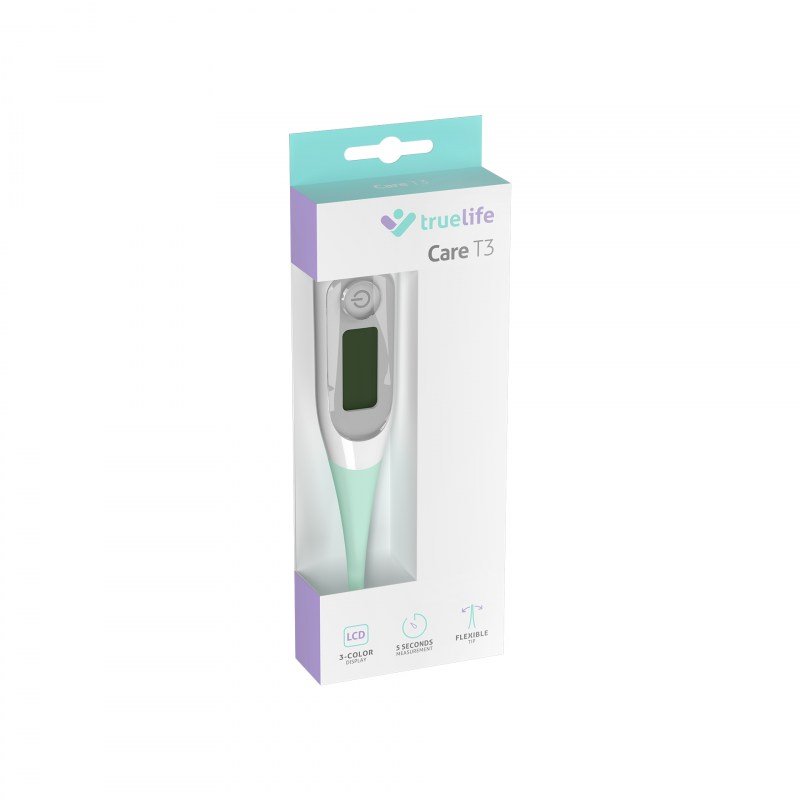 - Teploměrem TrueLife Care T3 změříte teplotu těla (podpaží, ústa či konečník) i vodní lázně