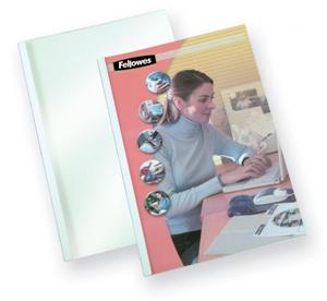 Přední strana termodesek Standing je opatřena transparentní fólií, zadní strana je pak vyrobena z polomatného bílého kartonu. Desky o tloušťce 4 mm jsou určeny pro vazbu 33-45 listů 80g…