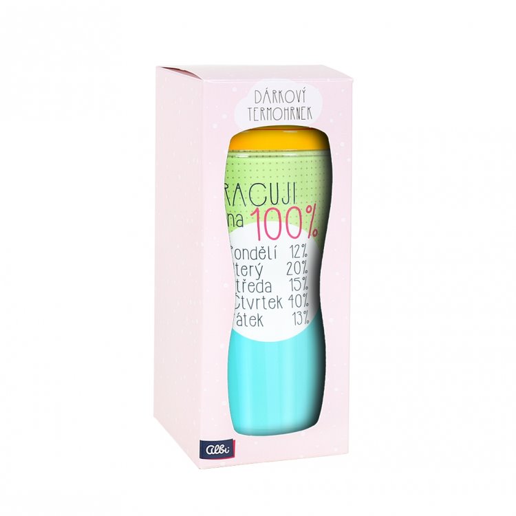 Udělejte svému blízkému radost a kupte mu k svátku, k narozeninám nebo jen jako poděkování, že ho máte ve svém životě, termohrnek s nápisem „Pracuji na 100%“ od značky Albi. Určitě si do něj rád připraví svůj oblíbený čaj nebo kávu a vyrazí na výlet, za příbuznými nebo do práce. Termohrnek se vyrábí ve veselých barvách a hodí se na jakékoliv cesty. Jelikož je balený v puntíkaté krabičce, ušetříte peníze za nákup ozdobných balicích papírů.