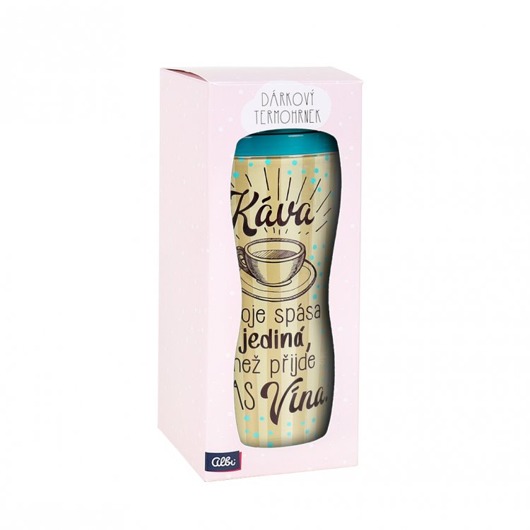 Udělejte svému blízkému radost a kupte mu k svátku, k narozeninám nebo jen jako poděkování, že ho máte ve svém životě, termohrnek s nápisem „Káva moje spása jediná, než přijde čas vína“ od značky Albi. Určitě si do něj rád připraví svůj oblíbený čaj nebo kávu a vyrazí na výlet, za příbuznými nebo do práce. Termohrnek se vyrábí ve veselých barvách a hodí se na jakékoliv cesty. Jelikož je balený v puntíkaté krabičce, ušetříte peníze za nákup ozdobných balicích papírů.