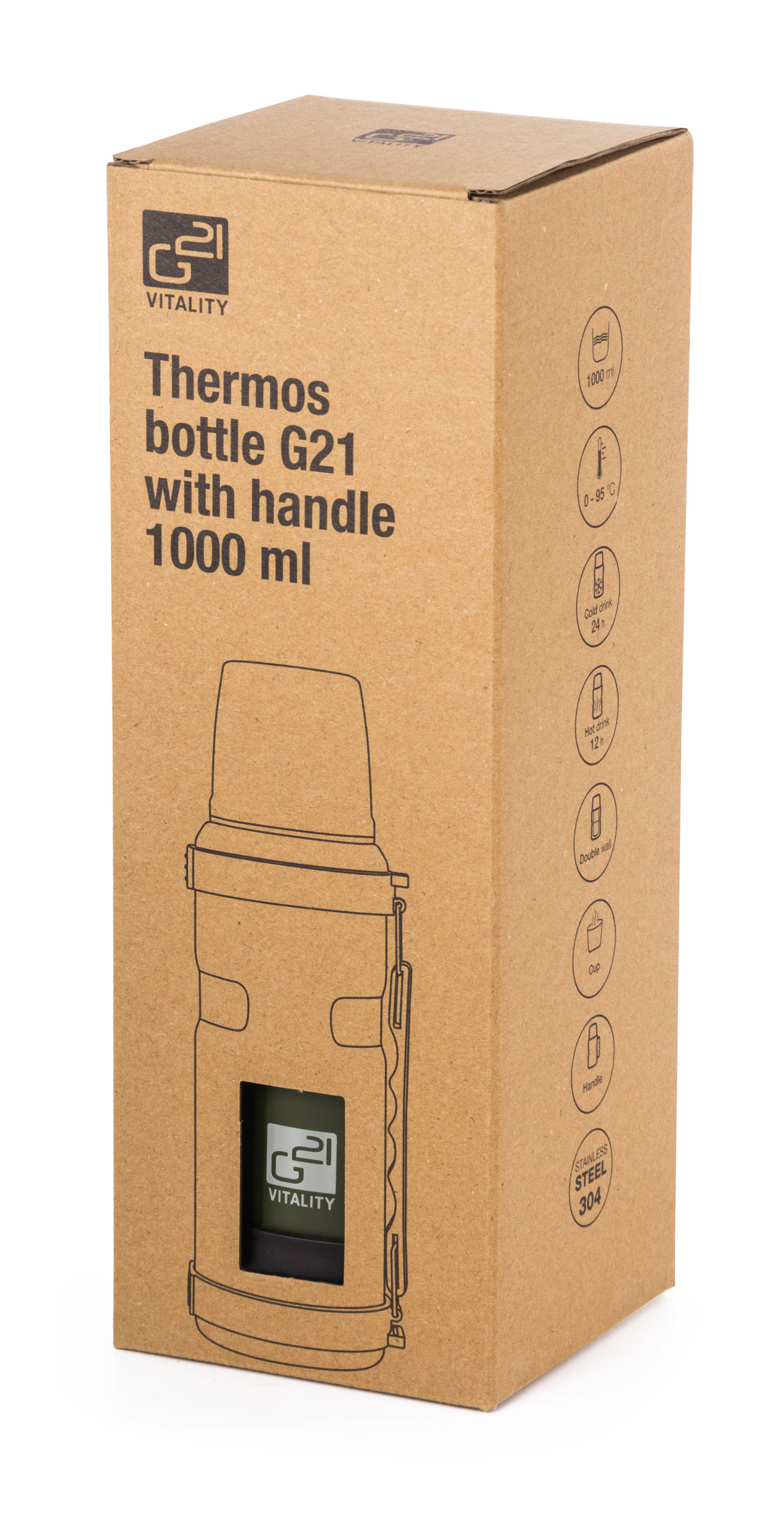 Největší předností termosky G21 je kvalitní termoizolace. Termoláhev z nerezové oceli má dvojité stěny a dokonale těsnící víčko s vnějším krytem. Nápoje tak udrží v požadované teplotě opravdu dlouho – horké až 12 hodin, studené až 24 hodin.