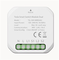 S chytrým relé Tesla Smart Switch Module Dual můžete zvlášť ovládat dva obvody. To využijete například v ložnici, kde jeden napojíte na hlavní světlo v místnosti a druhý na osvětlení u postele.