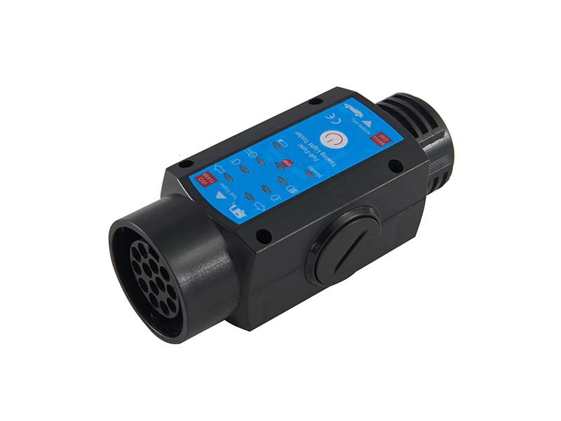 ento tester s LED diodami otestuje všechny funkce zásuvky i zástrčky vozu i přívěsného vozíku. Ukazatel LED diody zobrazí každé problematické připojení. Tester lze připojit samostatně přímo k zástrčce přívěsu a otestovat. Kromě toho můžete zkontrolovat funkčnost zásuvky ve vozidle, ale k tomu je potřeba 2 osoba kvůli sešlápnutí pedálu.