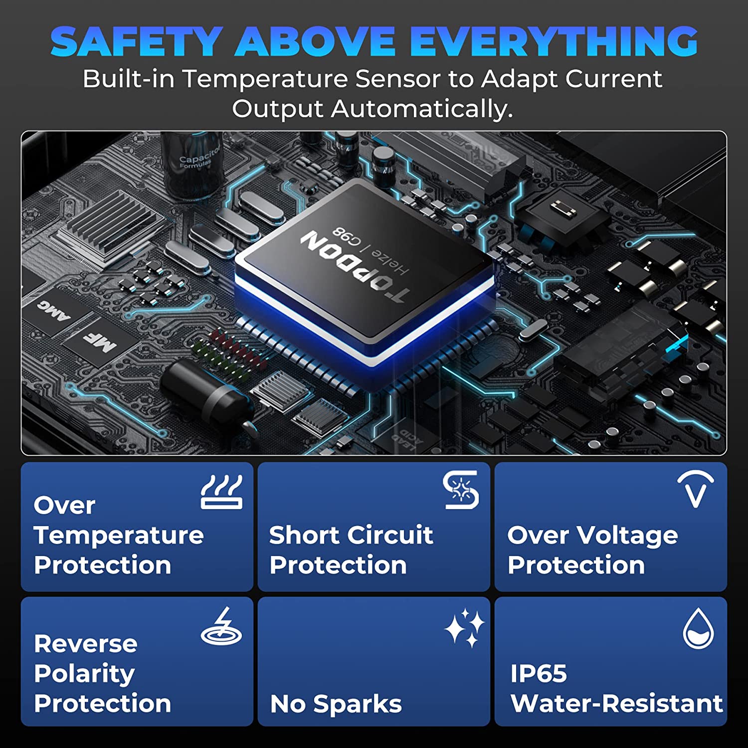 chráněni proti přepólování, jiskření, zkratu, přehřátí a přepětí.