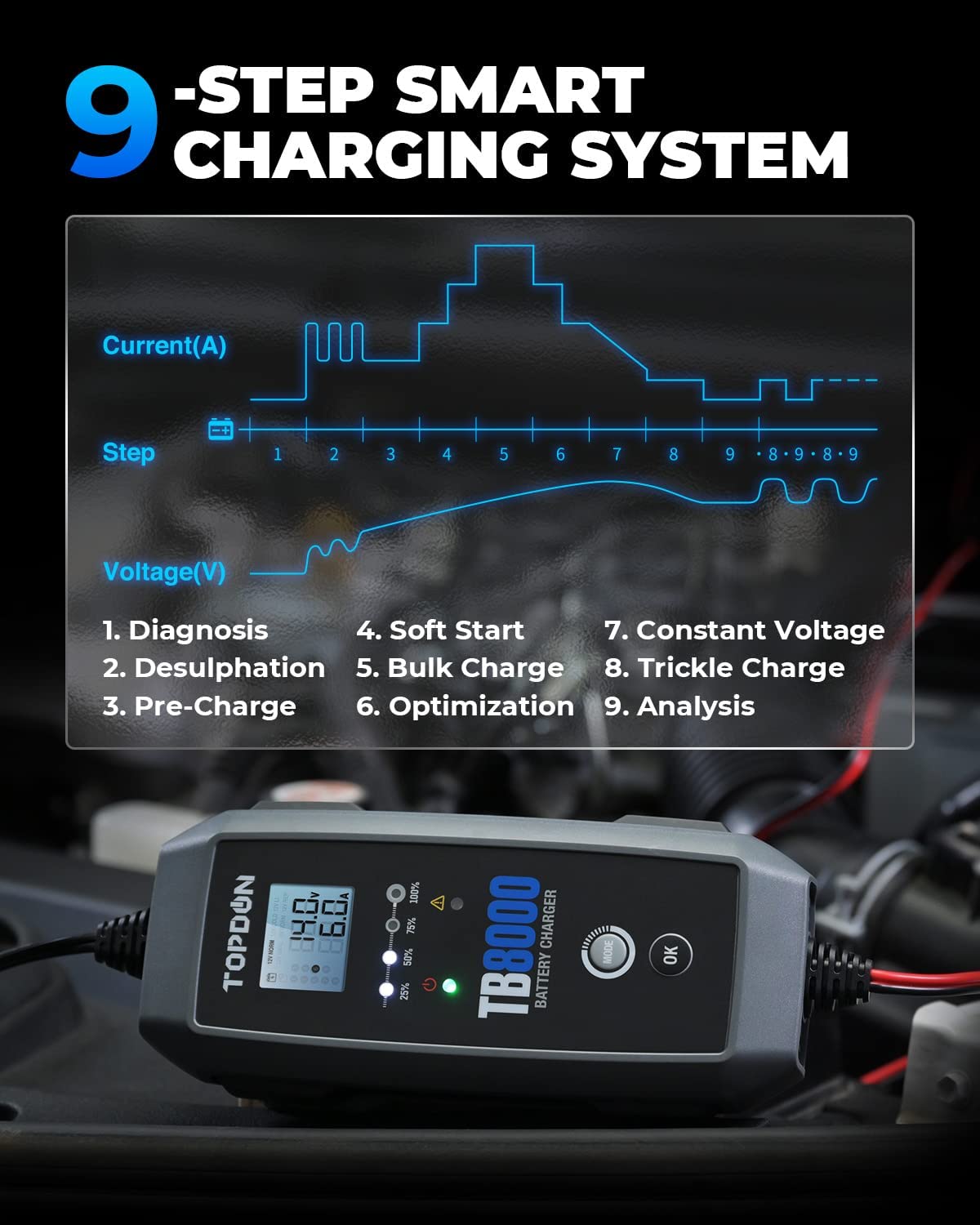 9stupňový systém inteligentního nabíjení TB8000 poskytuje