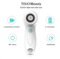 Elektrický čistící kartáček TOUCHBeauty 0759 nabízí tři různé nástavce, které odstraňují make-up, hloubkově čistí pleť a pomáhají s peelingem. Dvě pracovní rychlosti a velká ergonomická rukojeť zajišťují maximální komfort při každodenním používání. Díky voděodolnému provedení je čištění přístroje hračkou. Praktické pouzdro se hodí nejen pro ukládání přístroje a nástavců, ale i pro cestování.