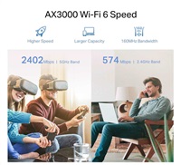 Dual Band WiFi 6 - Separates 5 GHz (2402 Mbps) and 2.4 GHz (574 Mbps) WiFi bands for faster speeds and greater capacity with the latest technology