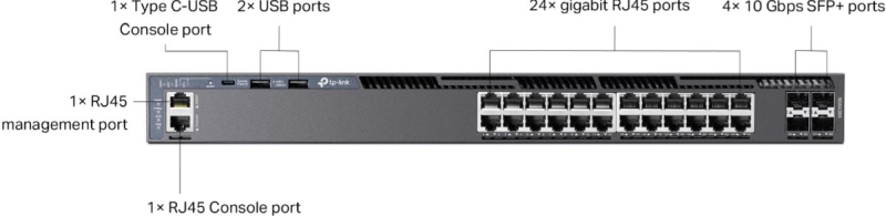 24 gigabitových RJ45 portů a 4× 10 Gbps SFP+ slotů